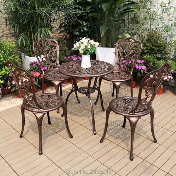 Ürün seçeneklerini görüntülemek için tıklayın: 5 parçalı döküm alüminyum veranda bistro seti, mersin'deki herhangi bir bahçeye zarafet katıyor